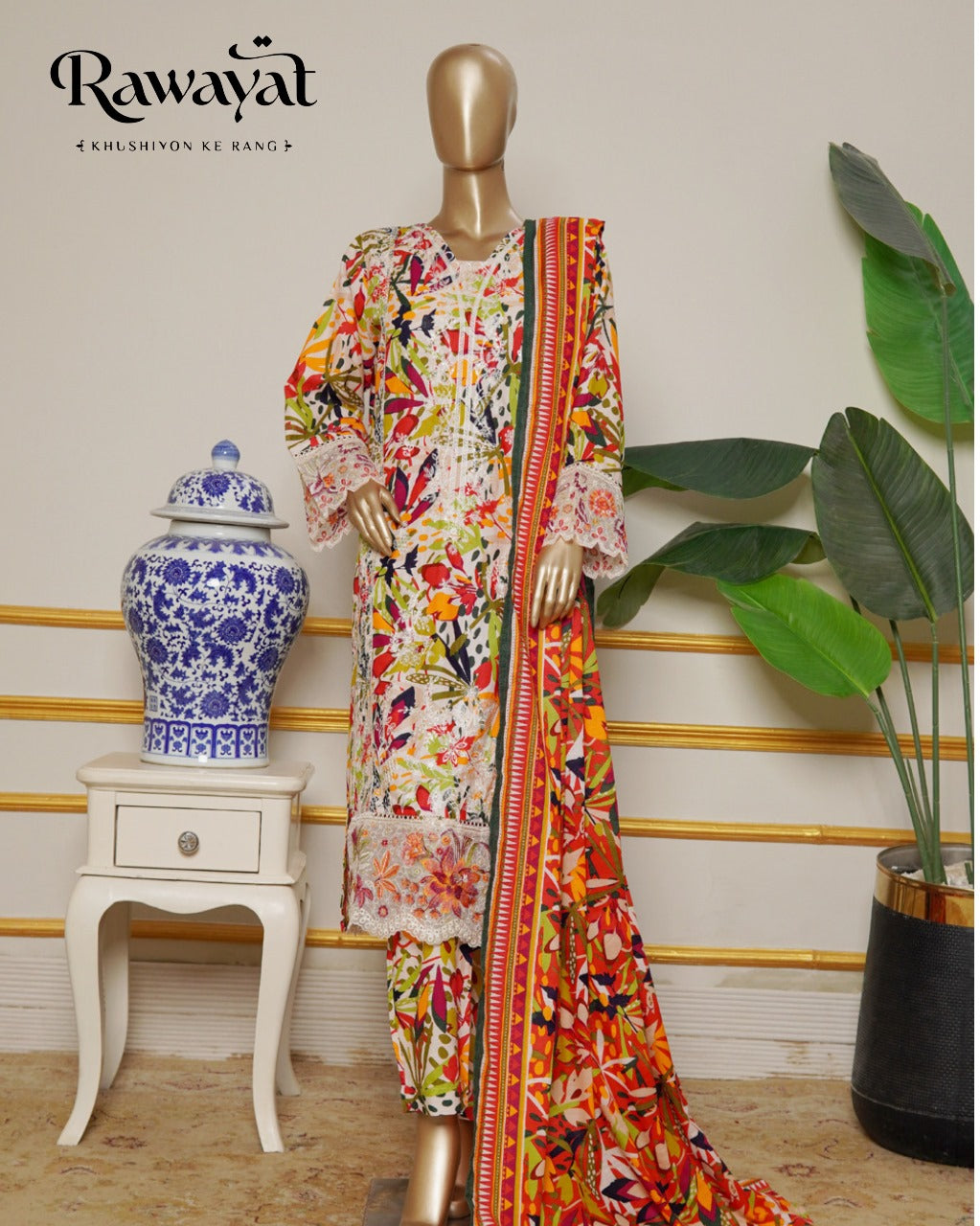 3 Piece  DFRNT  Color Embroidered Khaddar Stitched Suit with Khaddar Dupatta and Printed Trouser