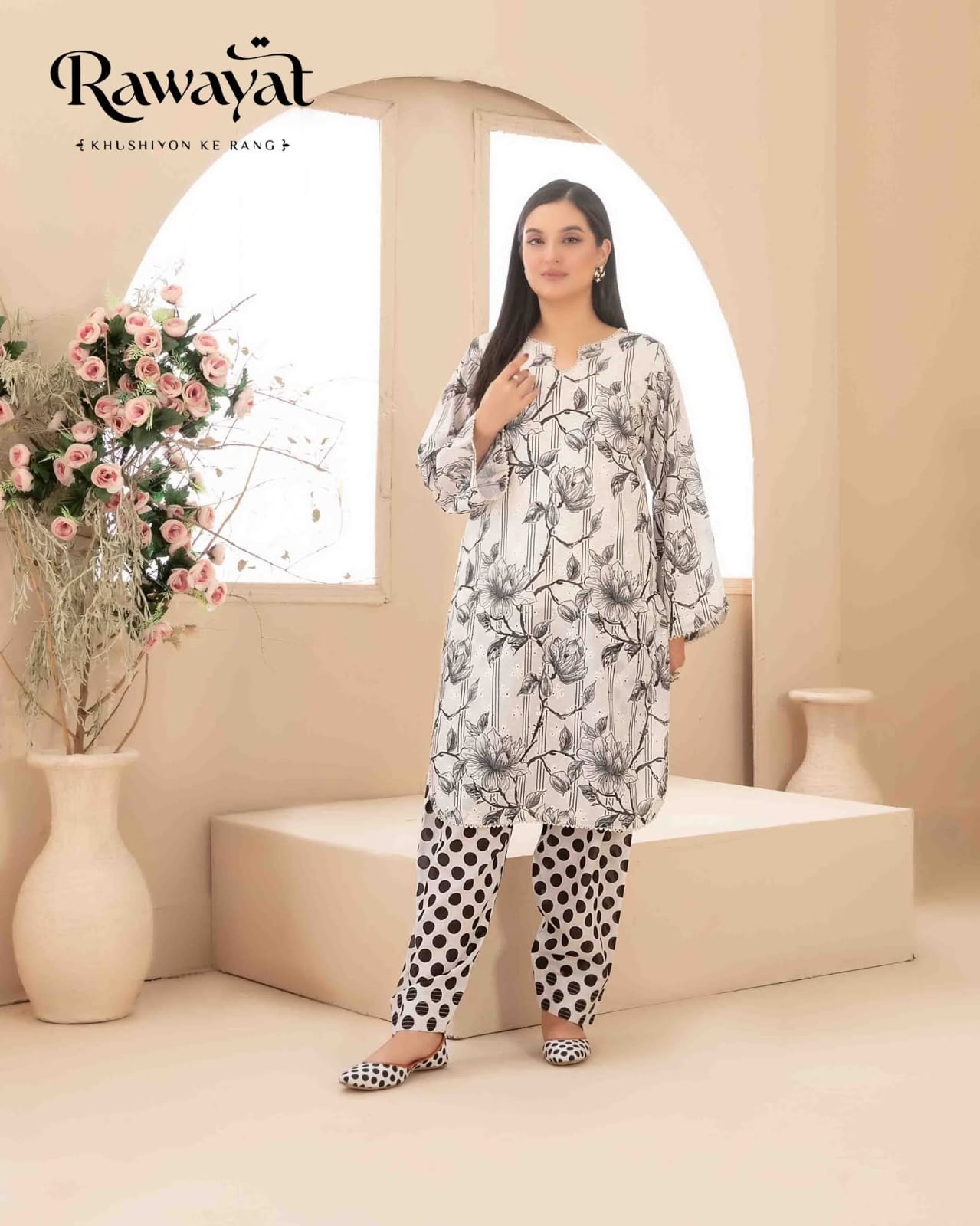 2 Piece Stitched Collection By Rawayat Fabrics, Attractive & Elegant Lawn Collection comes with:
