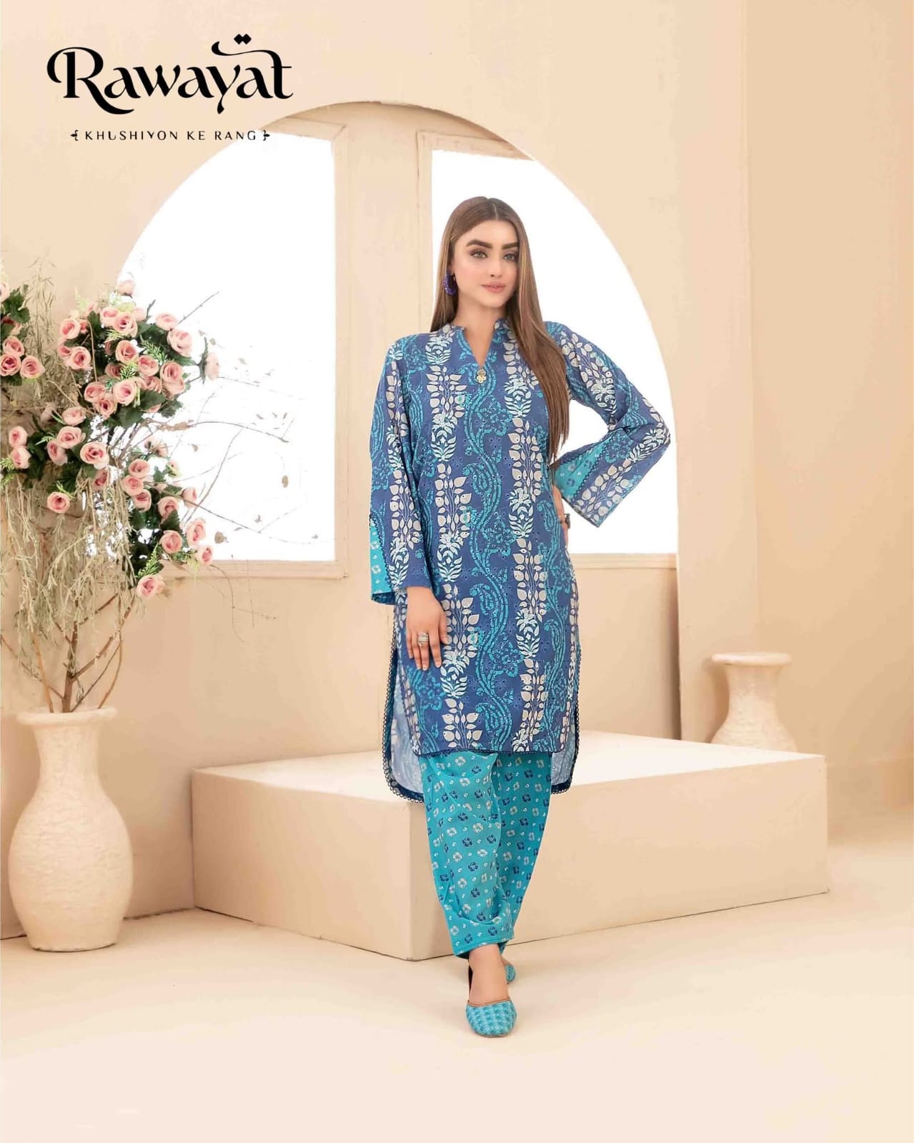 2 Piece Stitched Collection By Rawayat Fabrics, Attractive & Elegant Lawn Collection comes with: