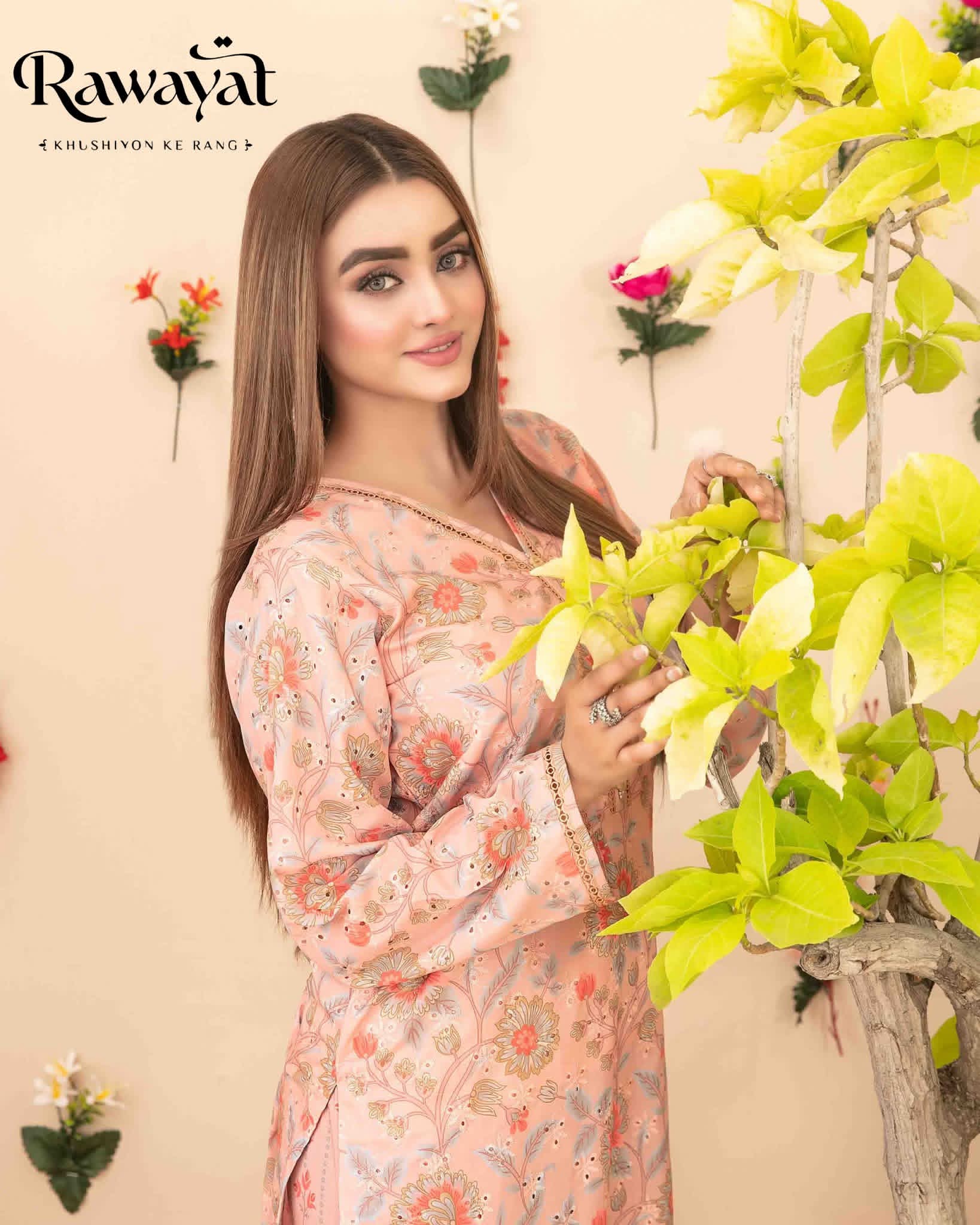 2 Piece Stitched Collection By Rawayat Fabrics, Attractive & Elegant Lawn Collection comes with: